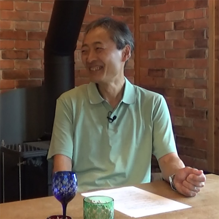 大阪出身の切子作家。東京でのサラリーマン勤務を経て、2019年徳島にて東京在勤の傍ら学んだ江戸切子をベースとしたガラス工芸品を手掛ける「KJ(KIRIKO J'adore)工房」を立ち上げる。2021年には小豆島にも工房を構え、二拠点で自然豊かなセカンドライフを送りながら、グラスや皿、ランプシェードなど、精緻なカットや丹念な手磨きなど技術と感性の光る数々の作品を生み出している。国際的な舞台でも高く評価され、イタリア開催の世界最大級のデザインコンテストで2021年から連続受賞。2025年には、小豆島のオリーブから着想を得た作品「Brilliant Olive (オリーブの輝き)」がSilver Awardに輝いた。