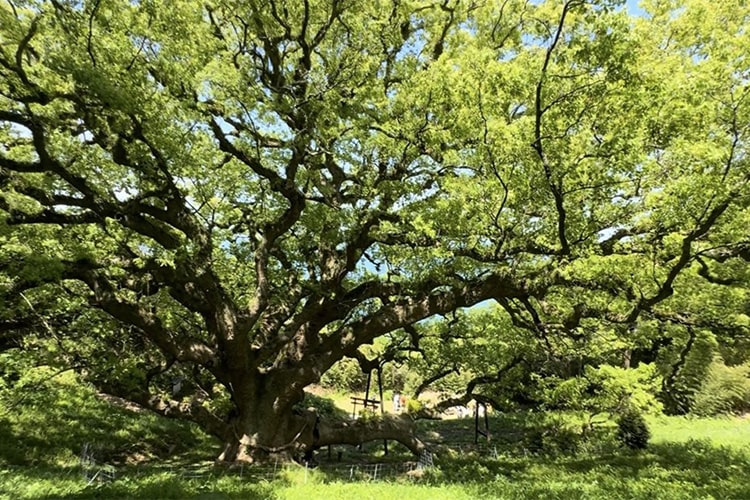 志々島のシンボルが、島の山の中腹にそびえる「大楠(おおくす)」の木です。圧倒的な巨木は樹齢1200年を超えるといわれ、香川県の天然記念物にも指定されています。