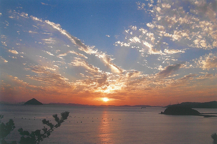 「直島スタンダードに参加していたプロの写真家に影響されて、よし自分もやってやろうと奮起したんだよね。直島のおすすめの夕日スポットは、地中美術館の前。とくに冬は空気が澄んでいてとてもきれいだよ。海の向こうに大槌島と瀬戸大橋が見えて、夕日とのコラボレーションが素晴らしいんだ。観光客にも、ぜひ島に泊まってこの夕日を見てもらいたいね」