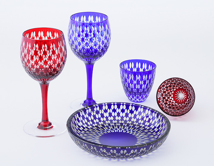 「島で唯一の酒蔵、小豆島酒造さんが毎年3月に開催している新酒祭には毎年出店しています。店内のブースで切子グラスを展示販売しているんですが、そういう場所でお客さんと直に話すと、いろいろな意見が聞けて参考になりますね。ほかにも、島内のワイナリーのオリジナルグラスを作ったり、近所のカフェでも私の作品を使ってもらったりしています」