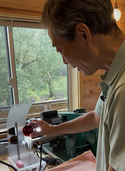 「当時はまさに企業戦士という感じで、夜遅くまで残業することも多かったですね。仕事が終わってから通える工房を見つけて、カットの技術を教わりました。切子にはカットの工程の後に『磨き』という工程があって、この『磨き』が、時間もかかるし技術も必要なんです。でも工房ではカットだけを教えてもらったので磨きは自分でインターネットなどで調べて独学で勉強しました」